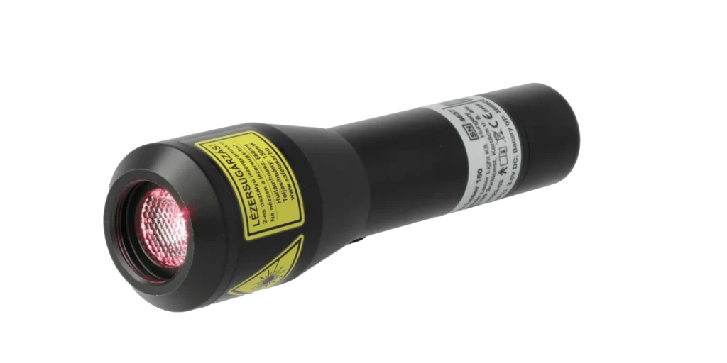 - Teljesítmény: 150 mW folytonos, biztonságos (szórt) lézersugárzás